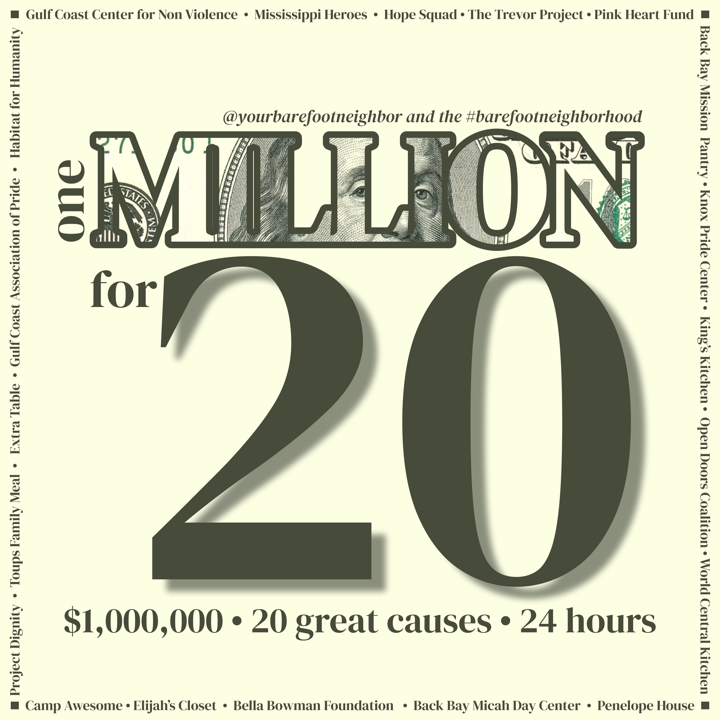 For my 43rd birthday, I had a huge goal - raise $1 million for 20 special nonprofits in partnership with the Gulf Coast Community Foundation. I went live for 26 hours straight with the goal of raising as much money as possible with the help of you - the generous Barefoot Neighborhood.