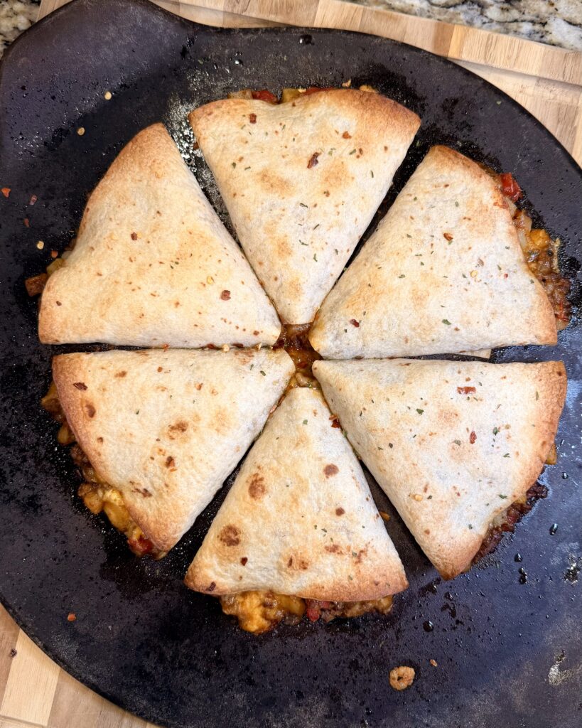 - Fold one side of the tortilla over the filling, then fold again to create a triangular pocket, similar to a crunchwrap-style fold.