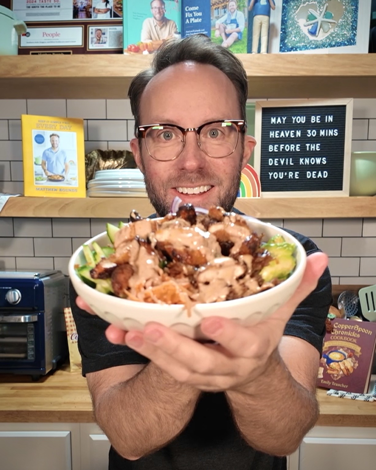 Matthew cooking Crispy Rice Bang Bang Bowls