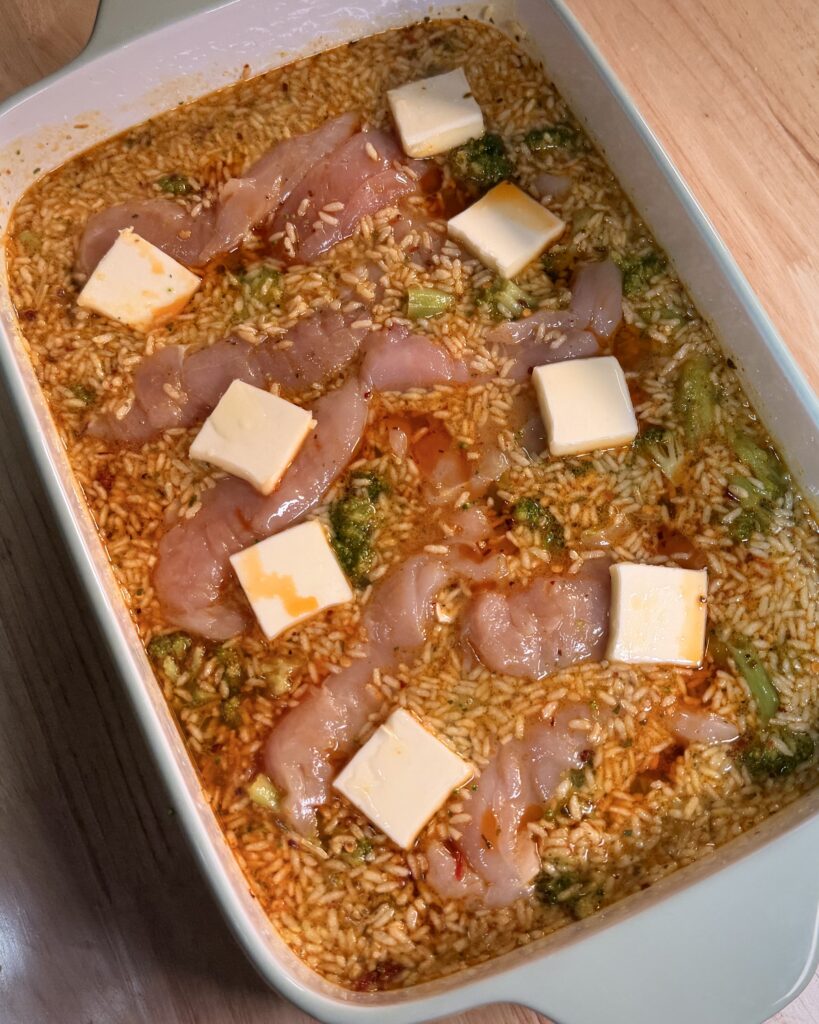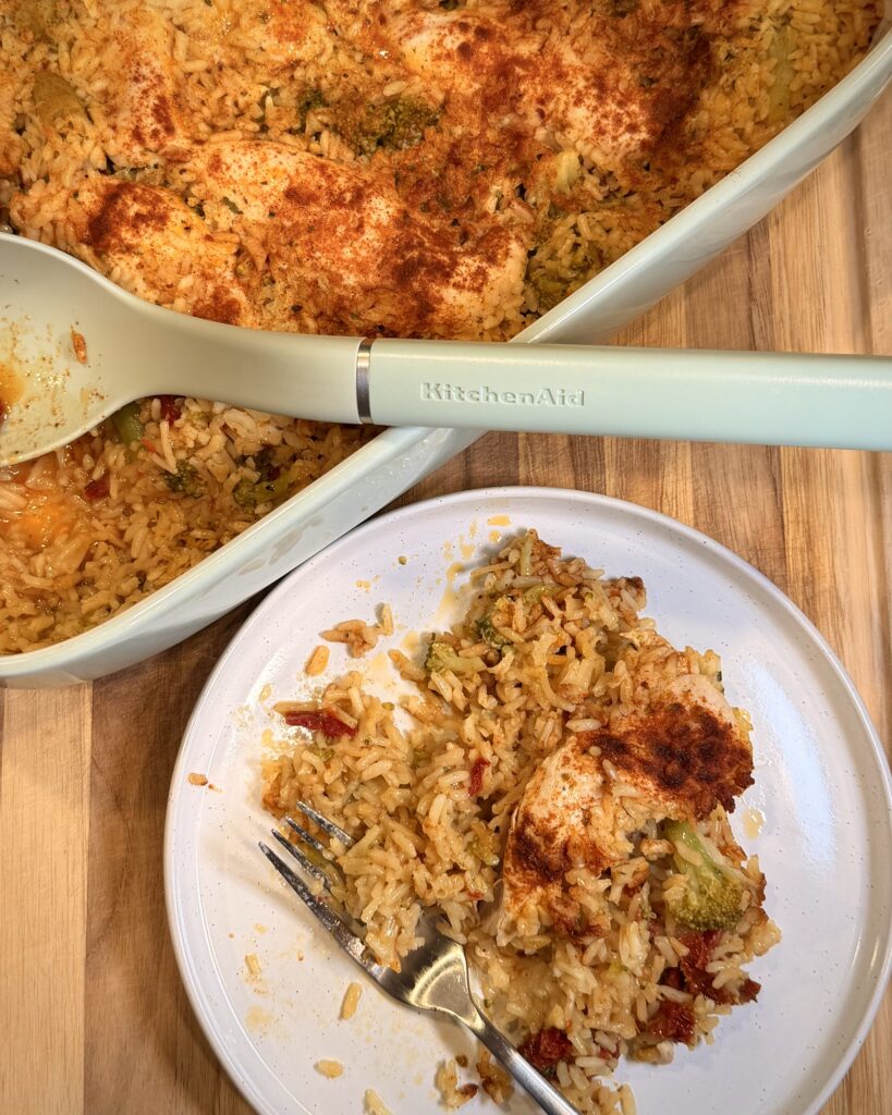 This Zesty Lemon Chicken & Rice is the kind of easy, flavorful bake that makes weeknights simple. The rice cooks right in the dish, soaking up lemon, Italian seasoning, and buttery goodness, while the chicken stays tender and juicy on top. With pops of broccoli and sundried tomatoes throughout, it’s bright, cozy, and packed with fresh flavor — all in one pan.